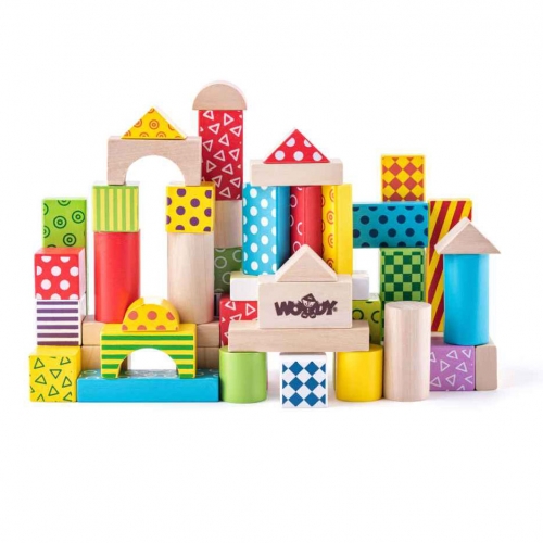 Toddler Blocks in a Bucket With a Shape Sorter Lid 50 pcs