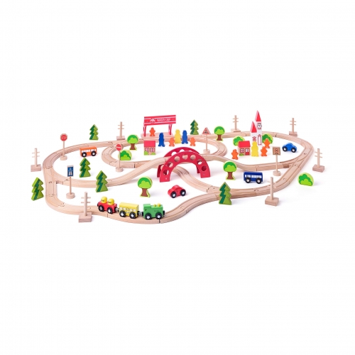 Railway set with bridge and train stop