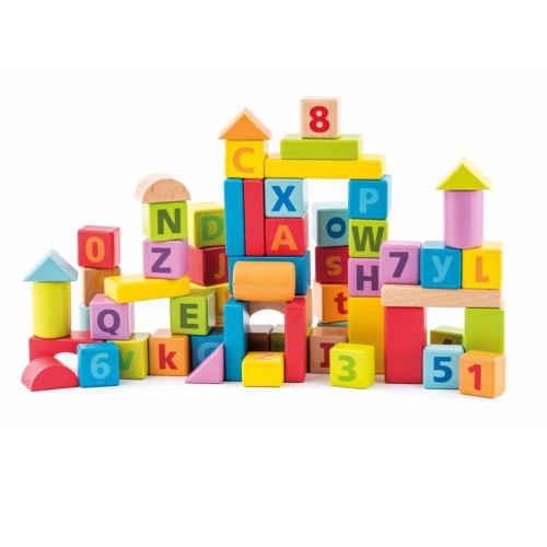 ხის კუბები, ასოებით და ციფრებით, 60 ც.